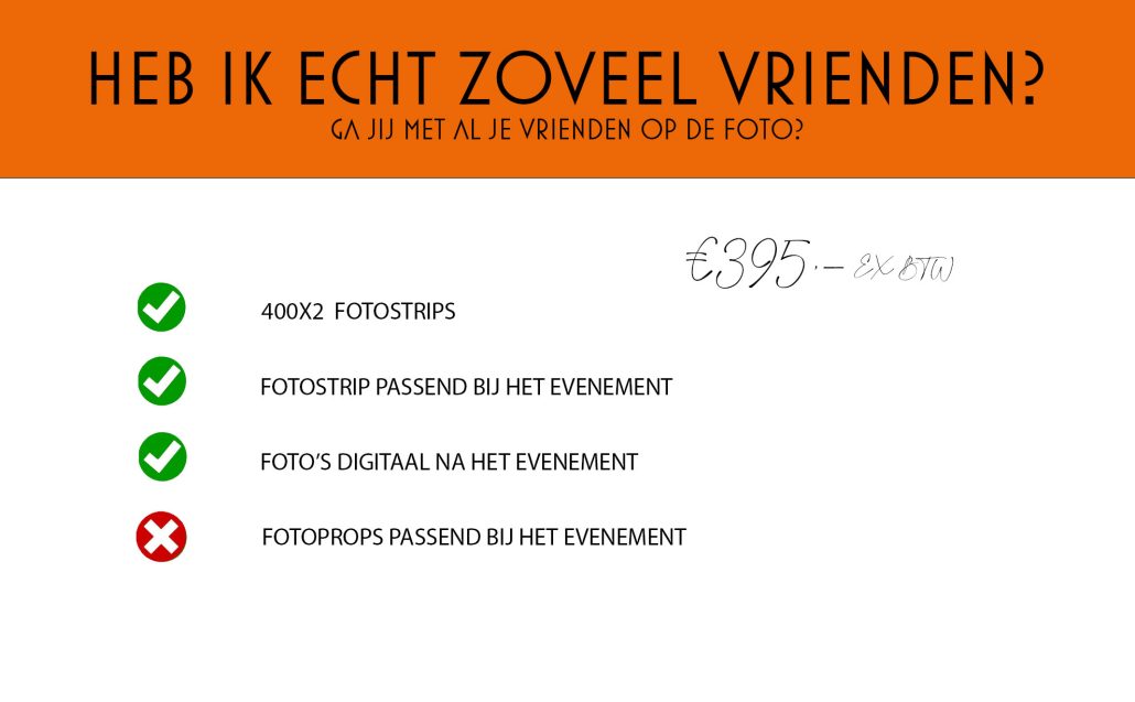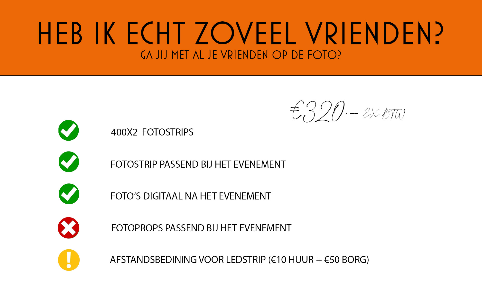 Bij andere bedrijven staat er “onbeperkt foto’s” in een pakket. Bij SVGPhotobooth zijn we open en transparant. met 400×2 foto’s heb je meer dan voldoende foto’s voor jouw feest! ongeacht hoeveel gasten.